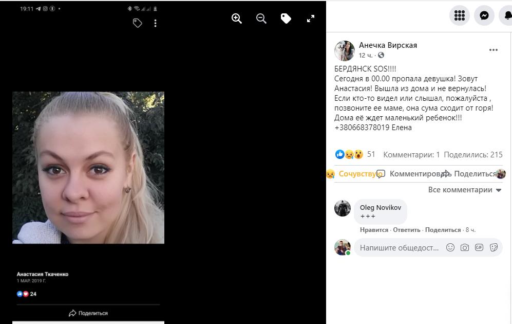 Ранее “Пресс-центр” сообщал, что в Бердянске пропала девушка. Информация о розыске Анастасии появилась в соцсетях.