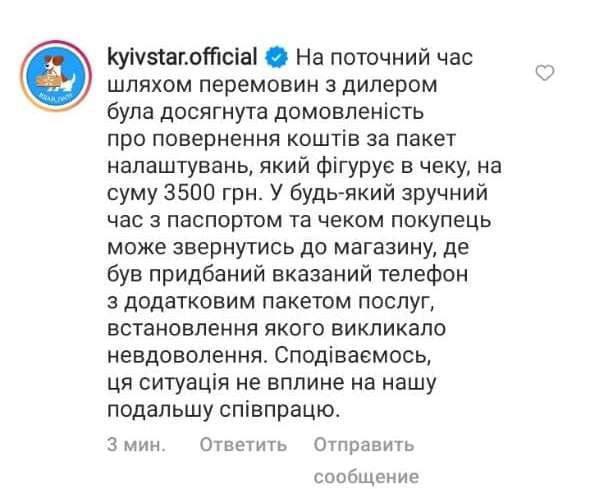 После того как в телеграм-канале Мелитопольграм оповестили о данном случае — Киевстар официально на их странице в Инстаграм дали ответ. По их информации – деньги за якобы услуги старушке вернули.