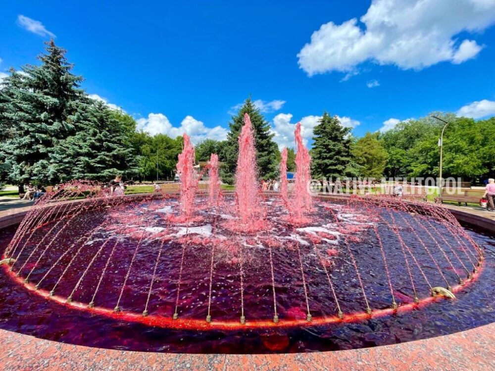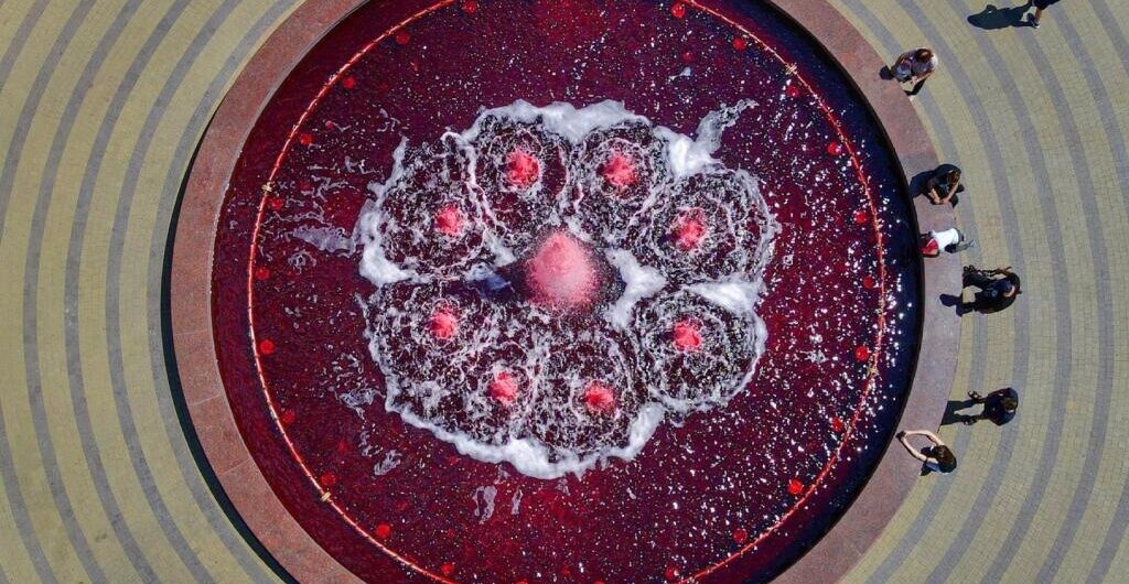 В честь ежегодного, юбилейного мероприятия покрасили фонтан в ярко-красный цвет. В городской фонтан добавили пищевой краситель, благодаря чему, вода окрасилась в красный цвет и стала напоминать настоящий черешневый компот.