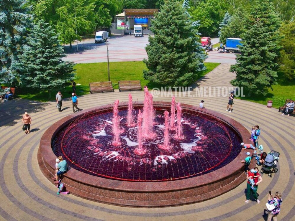 В честь ежегодного, юбилейного мероприятия покрасили фонтан в ярко-красный цвет. В городской фонтан добавили пищевой краситель, благодаря чему, вода окрасилась в красный цвет и стала напоминать настоящий черешневый компот.