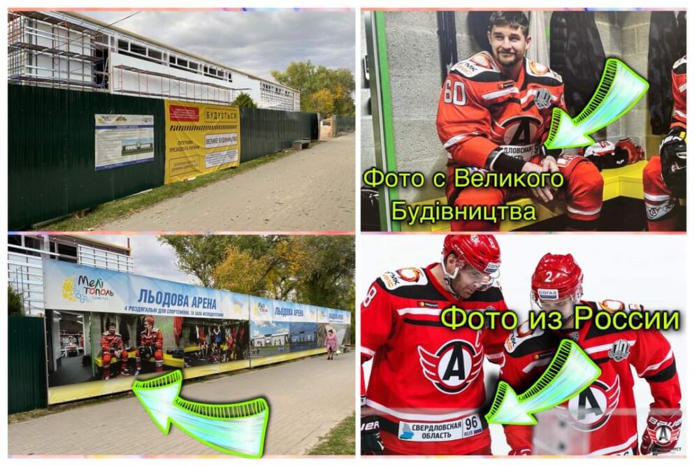 Так, при строительстве ледовой арены в Мелитополе – программа президента Владимира Зеленского «Велике Будівництво» – используют фотографии хоккейной команды “Автомобилисты” которая находится в России в городе Екатеринбург.