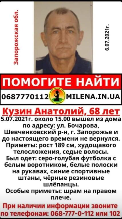 5 июля около 15.00 Кузин Анатолий вышел из дома по ул. Бочарова и не вернулся. Анатолию 68 лет.