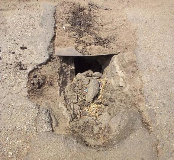 Дыра в дорожном полотне почти сквозная. “Будьте осторожны водители!» – призвал автор фотографий.