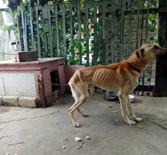 Жители Мелитополя морили голодом пса и абсолютно не ухаживали за ним. Собака была вынуждена жить в будке, размеры которой были в два раза меньше самого животного, сообщает ВМесте.