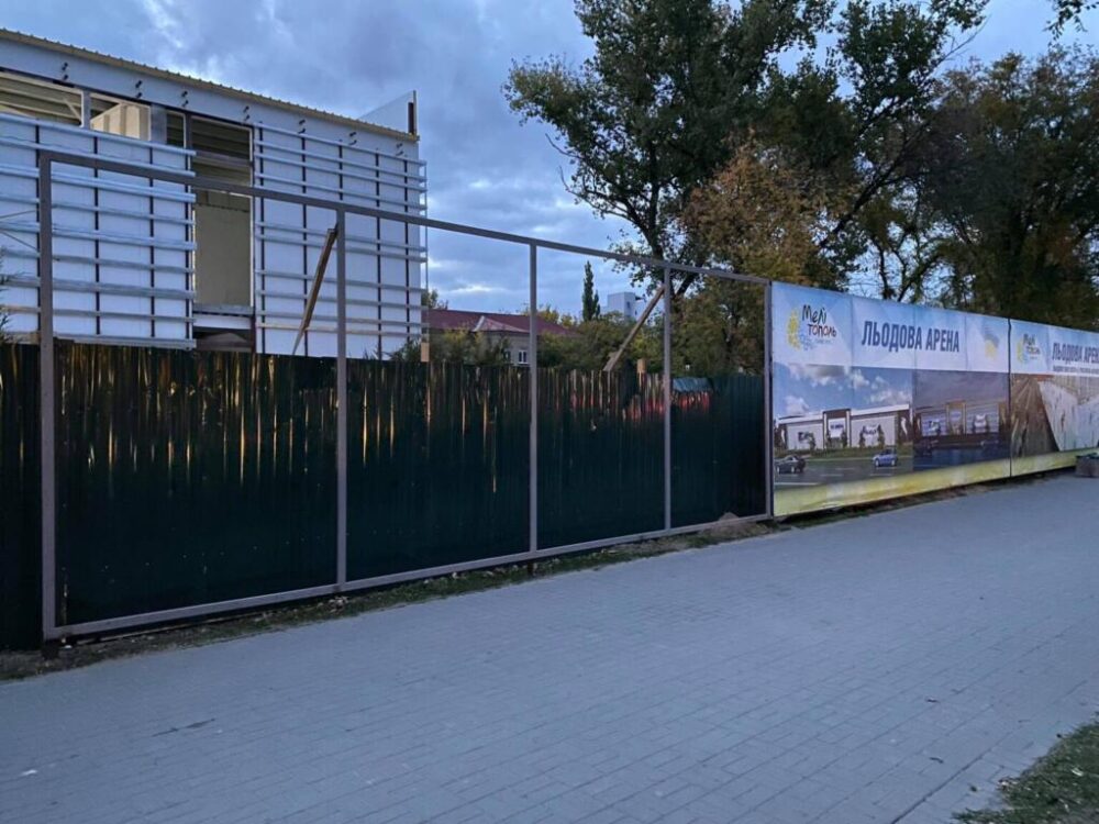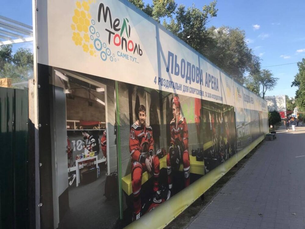 Вчера “Пресс-центр” писал о том, что на баннерах на строительстве ледовой арены в Мелитополе, которая проходит под эгидой президента Украины, изображены спортсмены российского хоккейного клуба.