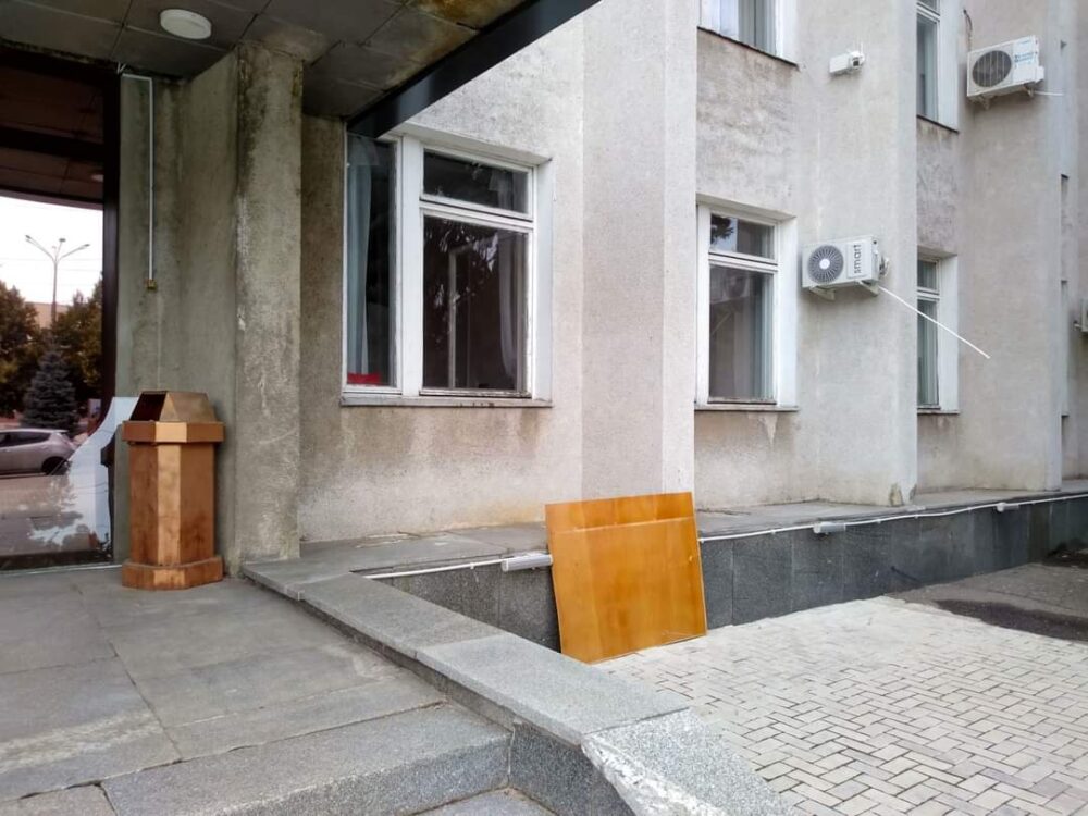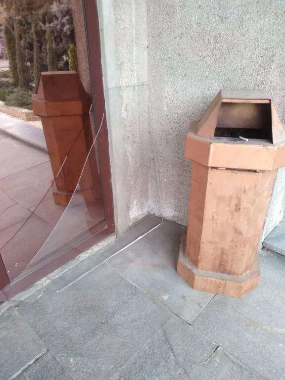 Несколько дней назад неизвестными лицами были выбиты два стекла в окнах здания Токмакского городского совета.