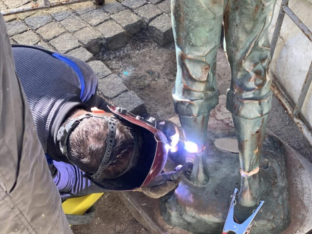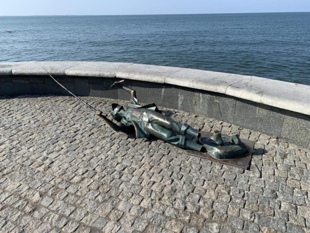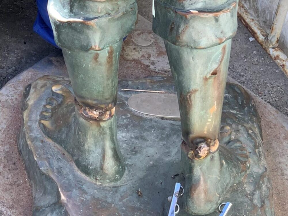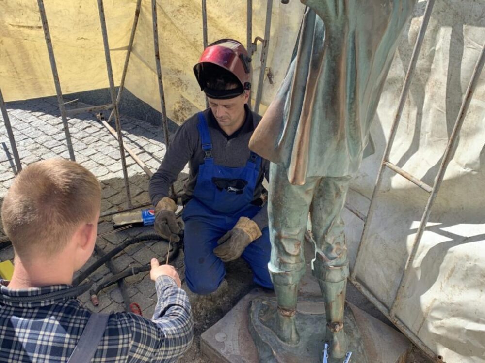 Ранее было принято решение — ноги рыбачка с набережной не выдалбливать. Тогда две части фигуры начали сваривать на месте. Но, по словам мастеров, соединение получается не столь надежным, как того хотелось. Работы на месте продолжаются. А вот получится ли восстановить памятник станет известно позже.
