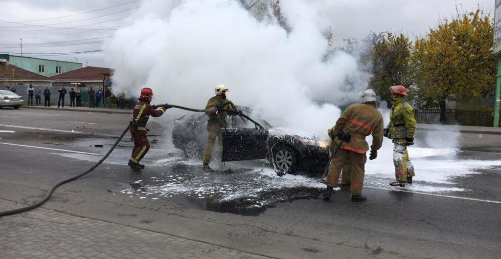 Прибыв на место происшествия, спасатели установили, что горит автомобиль Toyota Camry на общей площади 6 кв. м.