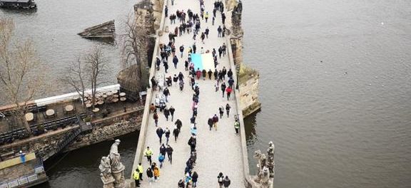 Читайте также: Украинцы из разных уголков нашего государства взялись сегодня за руки и образовали живую цепь единства на Карловом мосту в Праге.