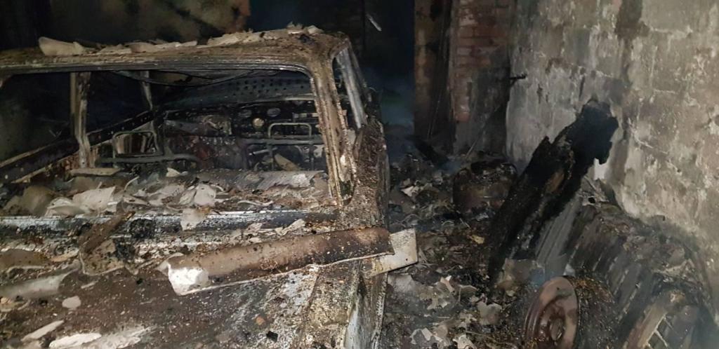 Прибыв на место происшествия, спасатели установили, что горит крыша жилого дома и гараж с автомобилем ВАЗ-2106 на общей площади 50 кв.м.