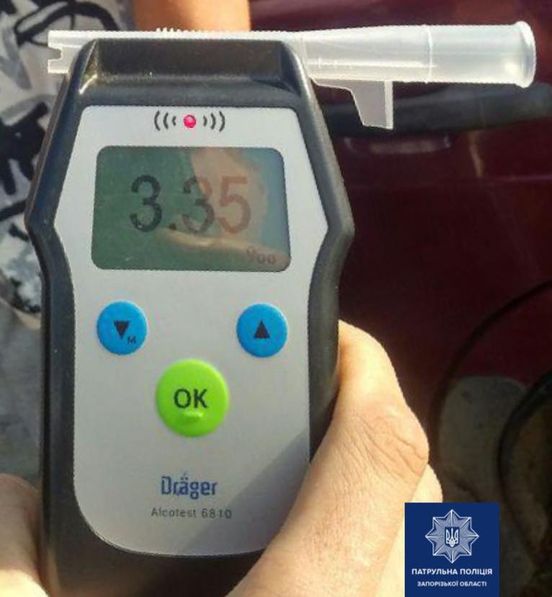 При составлении соответствующих материалов патрульные обнаружили у водителя признаки алкогольного опьянения. Мужчина прошел осмотр на месте остановки с помощью специального технического прибора Alcotest Drager, результат положительный – 3,35 промилле. Также у нарушителя отсутствовал страховой полис.