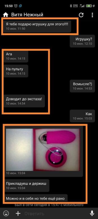 После этого переписку вели специально подготовленные люди. Любитель несовершеннолетних присылал множество материалов с целью пояснить каким образом он хочет овладеть ребёнком. На встречу с “девочкой” принес некий девайс для развлечения с ребёнком.