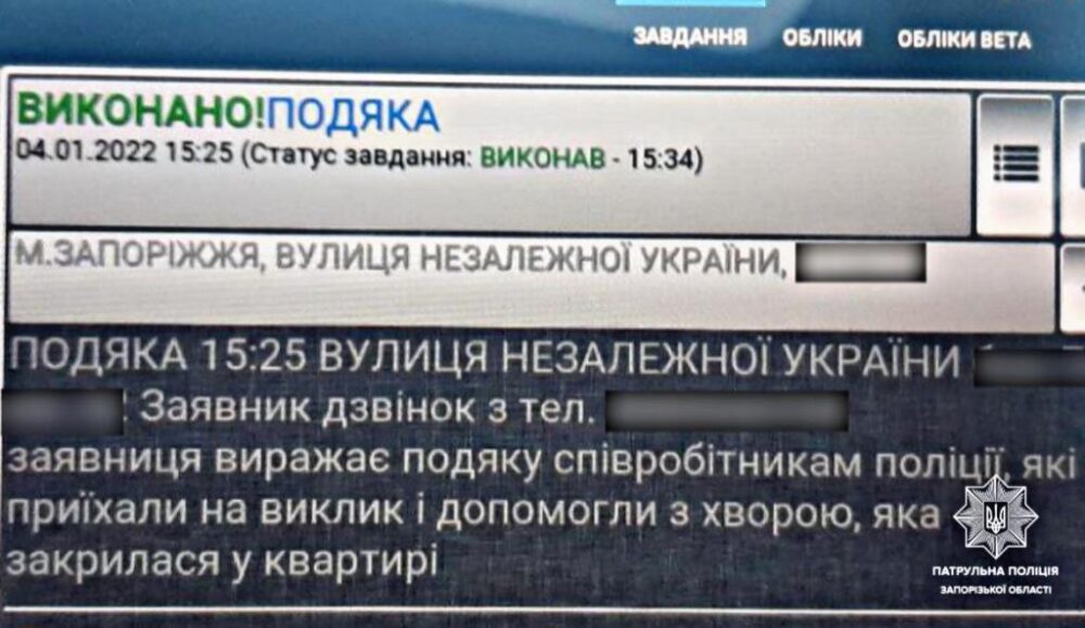 Женщина призвавшая на помощь сотрудников полиции поблагодарила за спасение и оперативное реагирование правоохранителей.