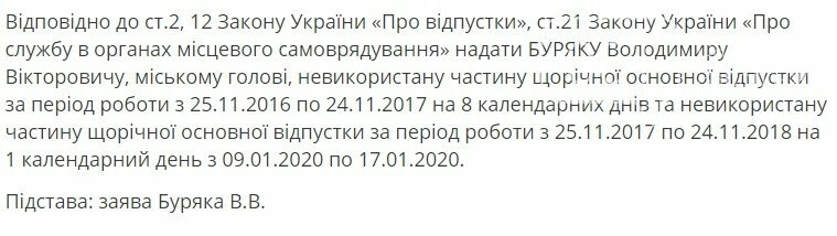 Решение об отпуске Владимира Буряка опубликовали на сайте Запорожского городского совета.
