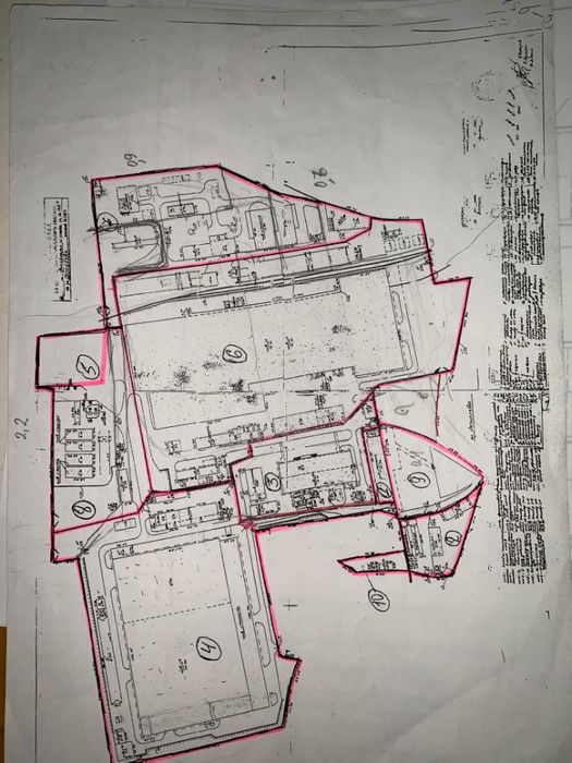 Территория завода условно разбита на 7 частей, каждая из которых может быть выделена и отдельно продана.