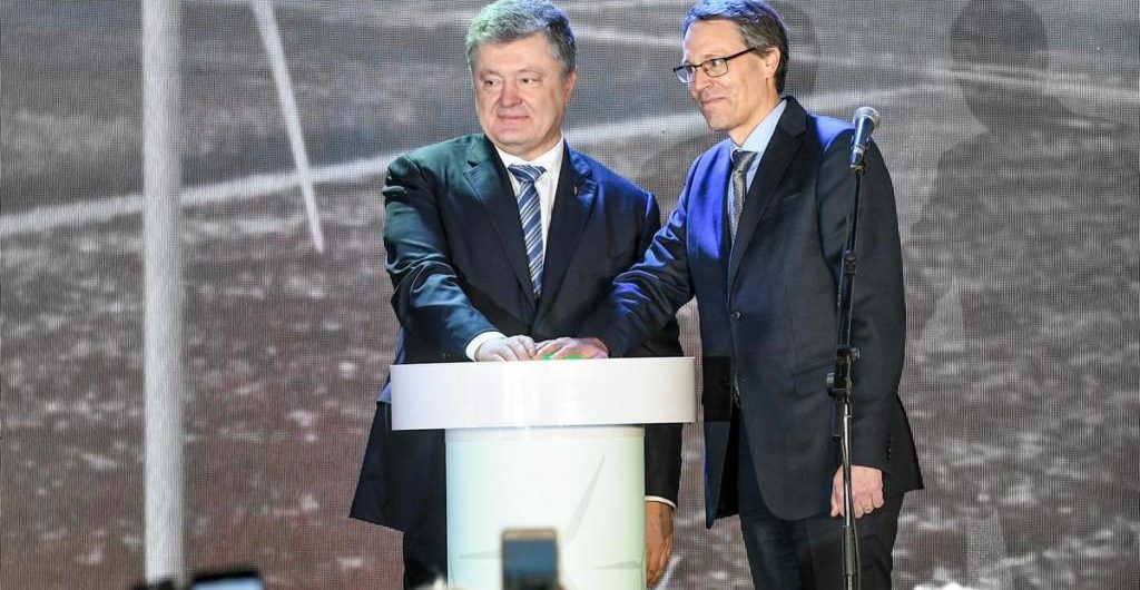 Петр Порошенко принял участие в торжественном запуске первых ветротурбин Приморской ветроэлектростанции (ВЭС) в Запорожской области.