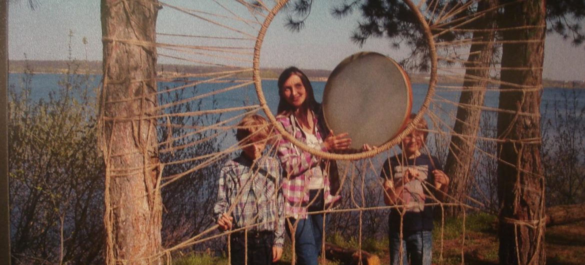 Здесь также можно было увидеть необычно выбритую и постриженную собаку с эзотерическими узорами на шерсти – животные тоже могут быть неформальными! Мастер Анастасия Неклюдова ушла от привычного формата и визуализировала звук по-новому: сине-зеленые нити горловой чакры соединяли вязаную мандалу (сакральный символ, сделанный из различных материалов) с поющей чашей. Фотограф и скульптор Александр Шкаликов показал искривленное зеркало посреди дорожки. Автор высмотрел в ландшафте символический арт-объект и сделал клетку из веревок наподобие ковчега среди ветвей деревьев.